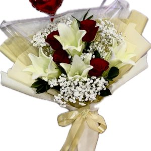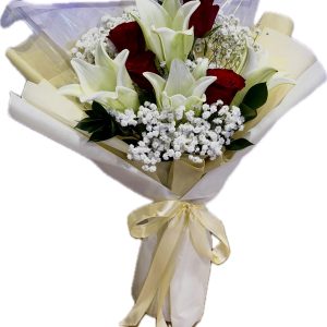 View cart “Beautiful gift -lovely lilies with 3 red roses with baby’s breath” has been added to your cart.