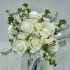 Elegant bridal bouquet 9 white roses with seasonal white fillers
